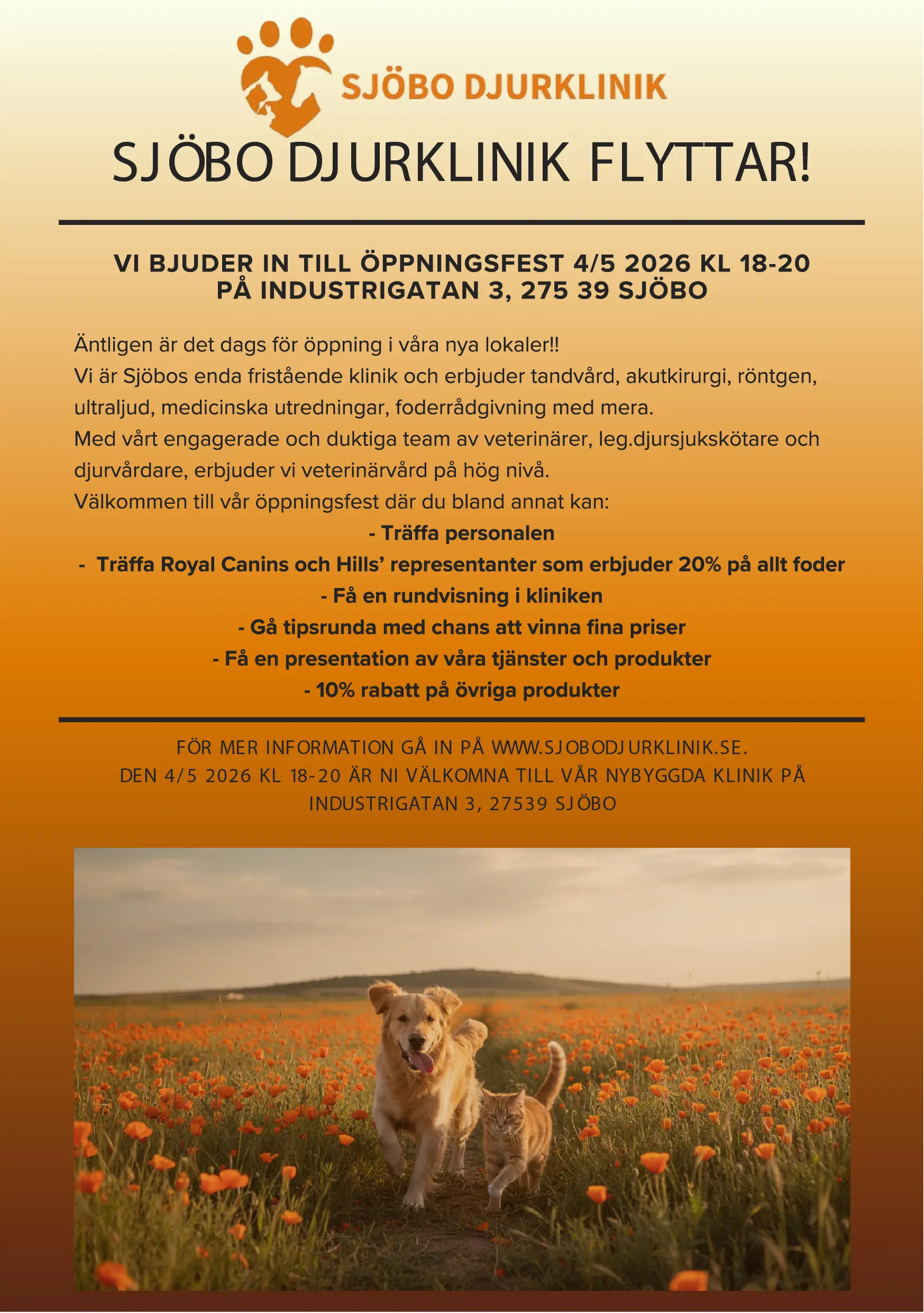 Från 4/5 2026 kommer vi flytta till industrigatan 3 i Sjöbo. Vi kommer ha mycket större lokal, röntgen, ultraljud och 5 undersökningsrum. Detta innebär vi